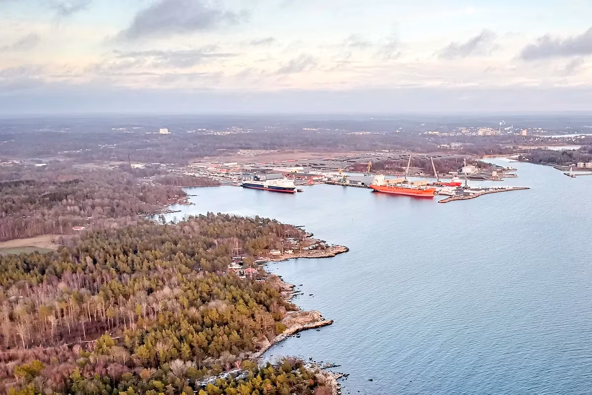 El puerto de ferris de Karlshamn se encuentra en la periferia occidental de la ciudad, a unos 3 km del centro.