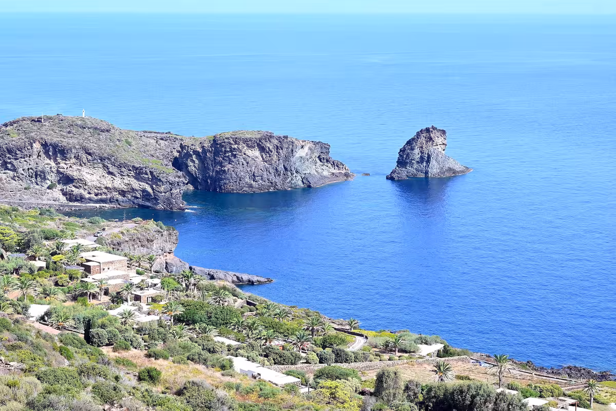 La isla volcánica de Pantelleria pertenece a la provincia siciliana de Trapani, pero geográficamente está casi en Túnez. La isla debe su existencia a la actividad volcánica de hace 300.000 años. A día de hoy, fumarolas y fuentes termales atestiguan sus orígenes. En la actualidad, la isla está habitada principalmente por italianos. Originalmente estaba habitada por árabes, que llamaban a Pantelleria la hija del viento. Los pocos turistas que llegan hasta aquí se encuentran con numerosos espectáculos naturales, como el lago turquesa llamado Espejo de Venus o el Arco del Elefante, una formación rocosa con forma de cabeza de elefante. Los entusiastas de la cocina también sacan provecho de su dinero. Pantelleria le mimará con especialidades como el vino de postre Passito o la característica crema de alcaparras Salsa ai Capperi di Pantelleria.