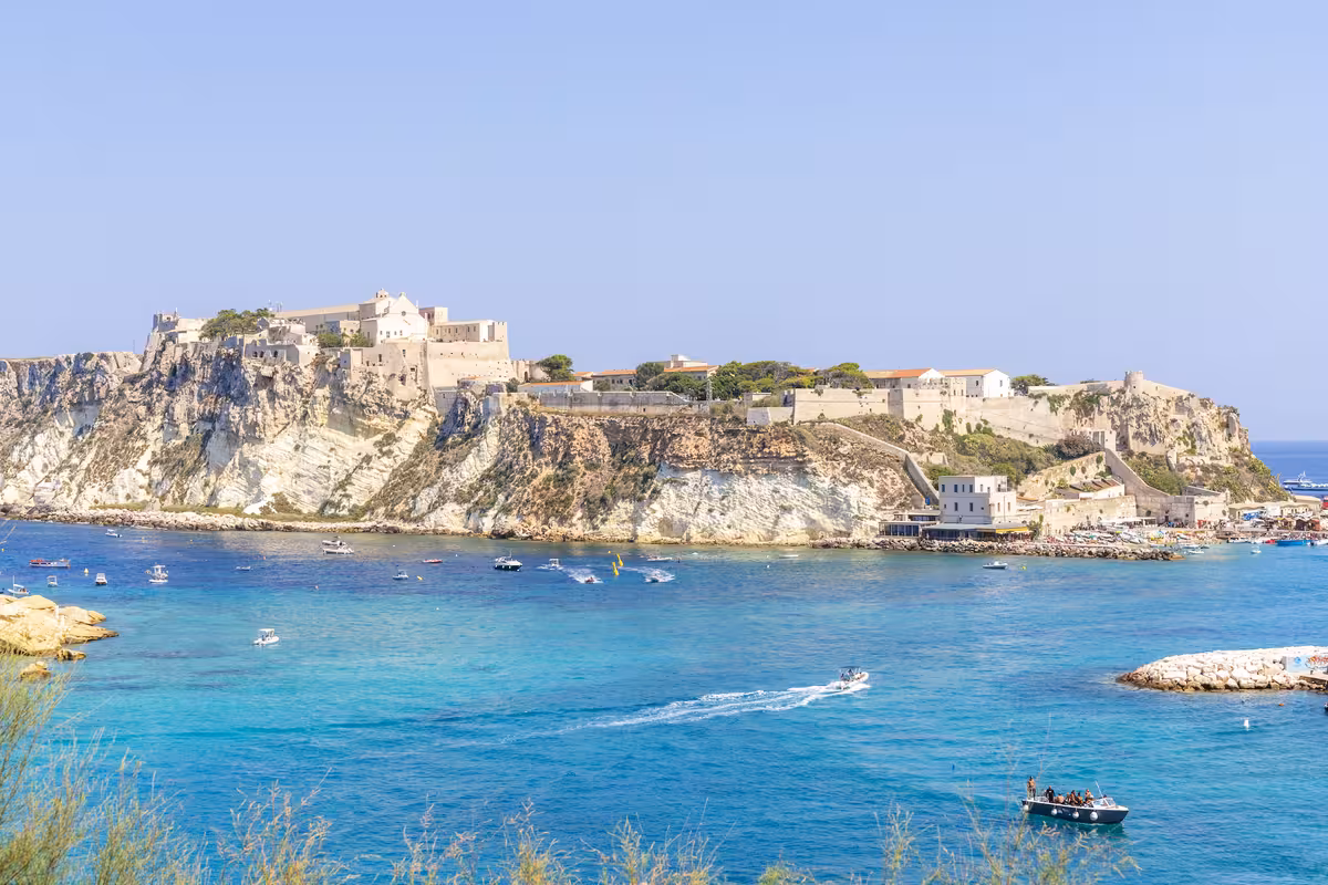 San Nicola está situada en el mar Adriático y pertenece a la provincia de Foggia, en Apulia. Es la tercera isla más grande del popular archipiélago de Tremiti. Incluso desde lejos, la isla se asemeja a una fortaleza. Los monjes benedictinos construyeron aquí una fortaleza en el siglo IX, que ha sido objeto de numerosos ataques a lo largo de su historia. En lo alto de tierra firme se encuentra la histórica iglesia de Santa Maria a Mare, consagrada en 1045 d.C. y que atrae a numerosos visitantes año tras año. Las pequeñas tiendas de las estrechas callejuelas y los acogedores restaurantes del puerto invitan a pasear y disfrutar.